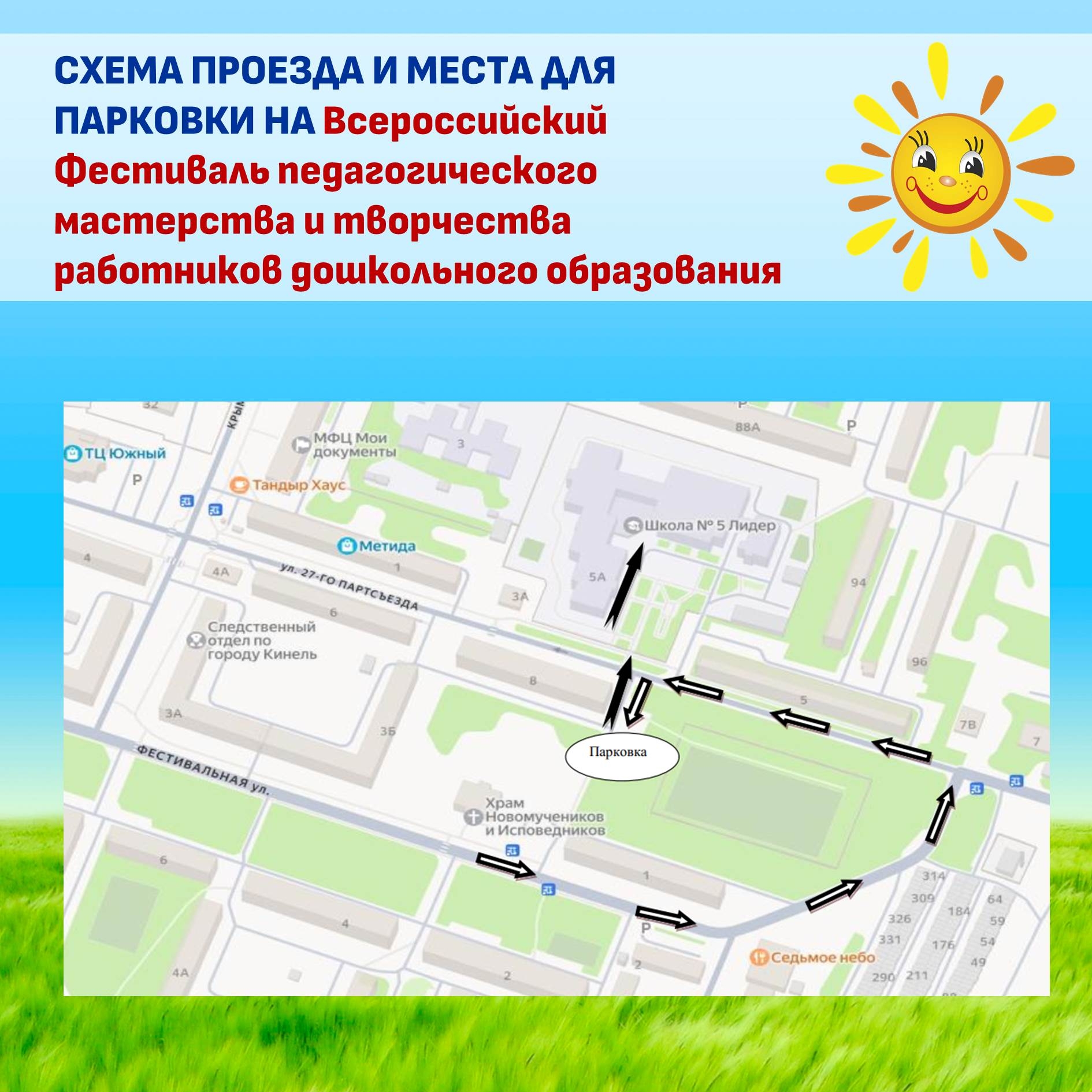 Для удобства участников и гостей Всероссийского Фестиваля педагогического мастерства и творчества работников дошкольного образования «Единство ценностей. В детский сад за смыслом» мы разработали схему проезда и парковки. Ознакомьтесь с ней заранее, чтобы без проблем добраться до места.