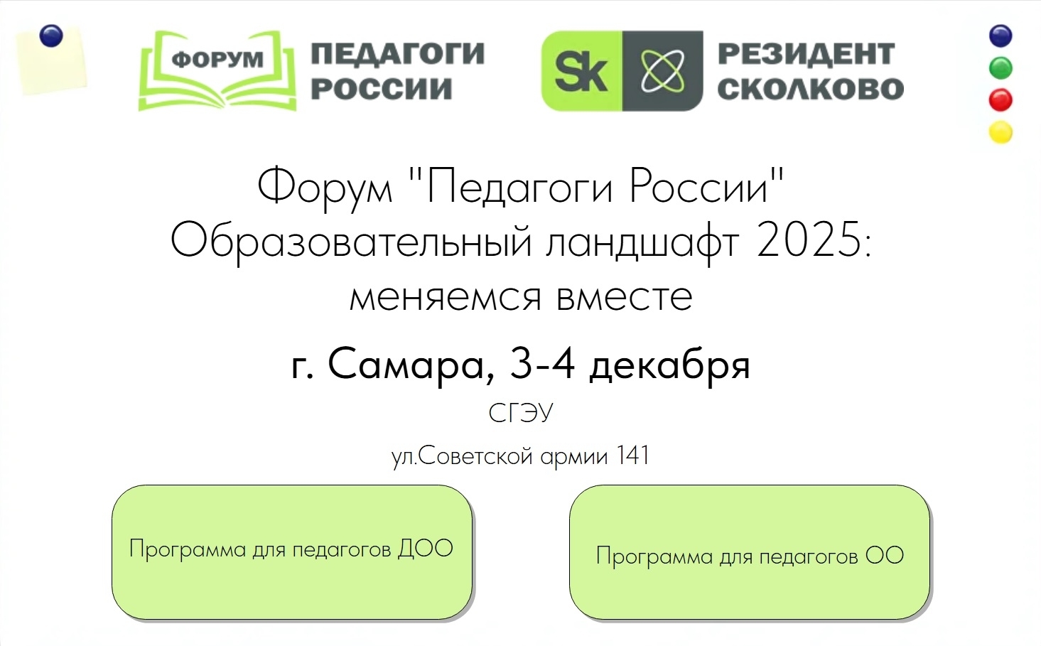 Приглашаем педагогов принять участие в очном этапе Всероссийского форума «Педагоги России: инновации в образовании», который пройдёт 3–4 декабря 2025 года в Самаре.