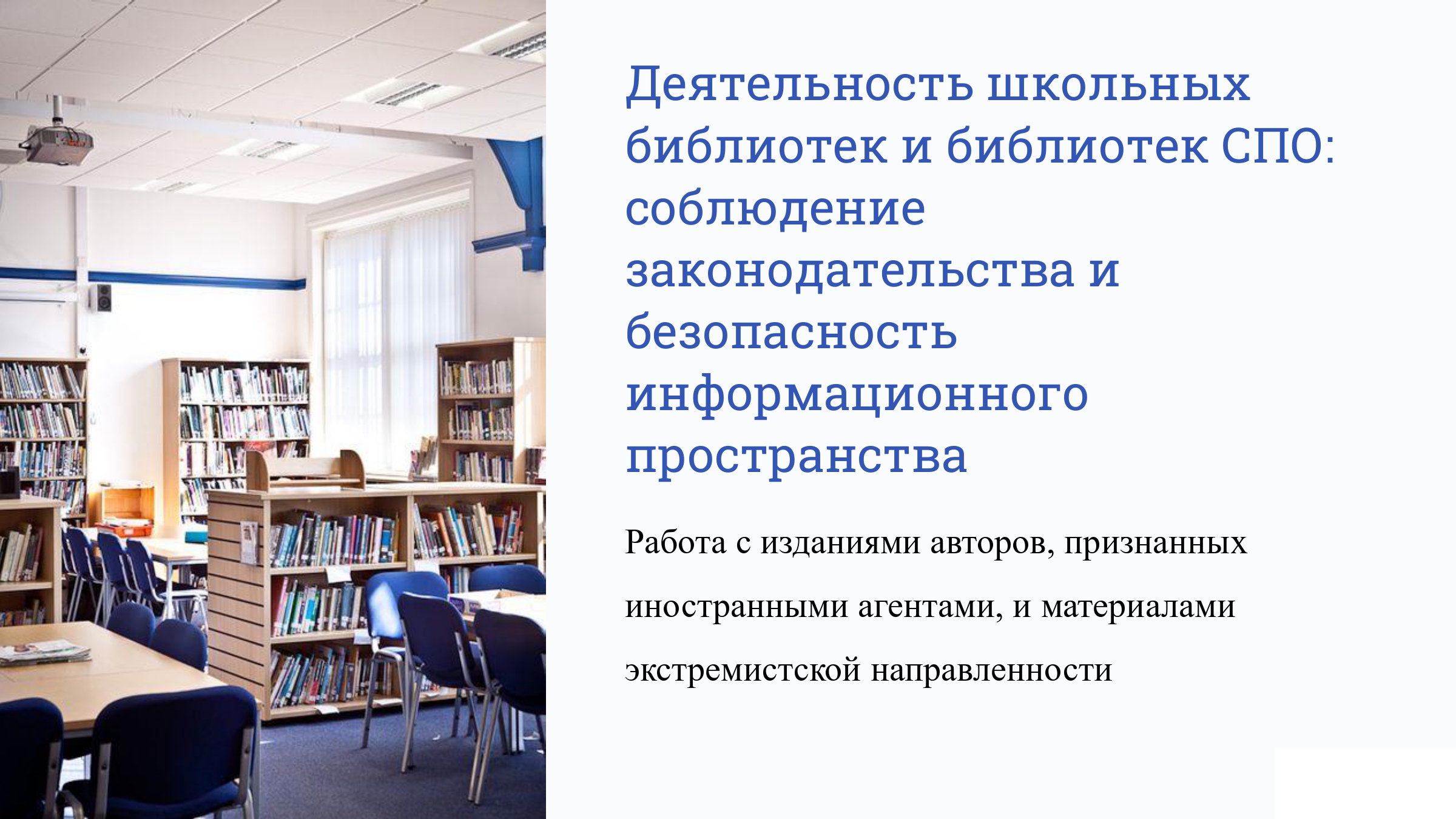 Мероприятие было посвящено ключевым аспектам работы школьных библиотек в современных условиях: созданию безопасного, правомерного и развивающего информационного пространства для обучающихся.