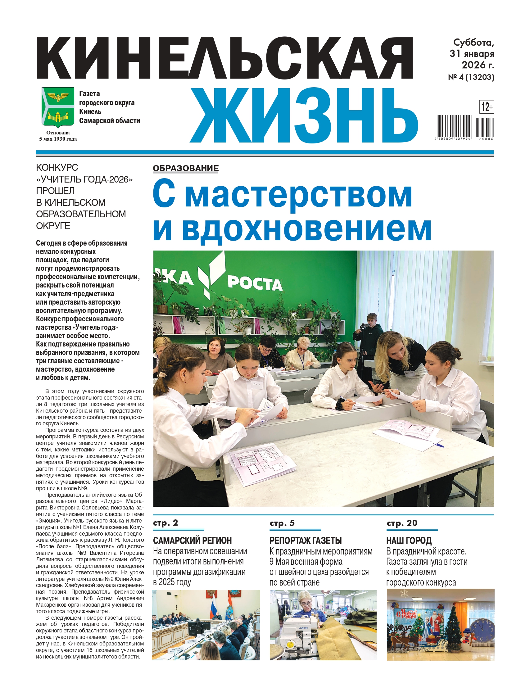 📄 В свежем выпуске газеты «Кинельская жизнь» от 31 января 2026 года опубликована статья о проведении окружного этапа престижного конкурса профессионального мастерства «Учитель года — 2026».