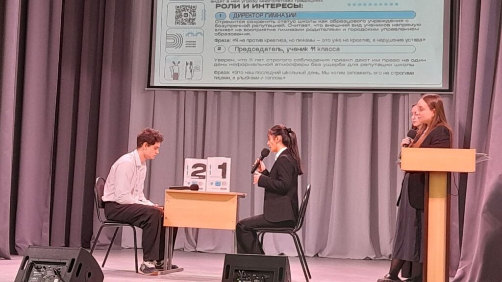 Финал деловой игры состоялся 18 марта 2026 г. в Центре социализации молодёжи. На поединках встретились победители окружных этапов. 38 лидеров ученического самоуправления области отстаивали в парах свою позицию по предлагаемой ситуации. А затем вели диалог, задавали друг другу вопросы, пытаясь прийти к единому решению. Никита не проиграл ни одного поединка.