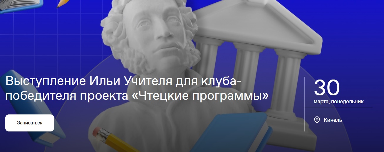 Встреча с одним из известных режиссеров страны станет наградой для учащихся школы, чей литературный клуб вошел в топ-30 победителей ежемесячного рейтинга проекта. Мероприятие пройдет в формате открытого диалога.