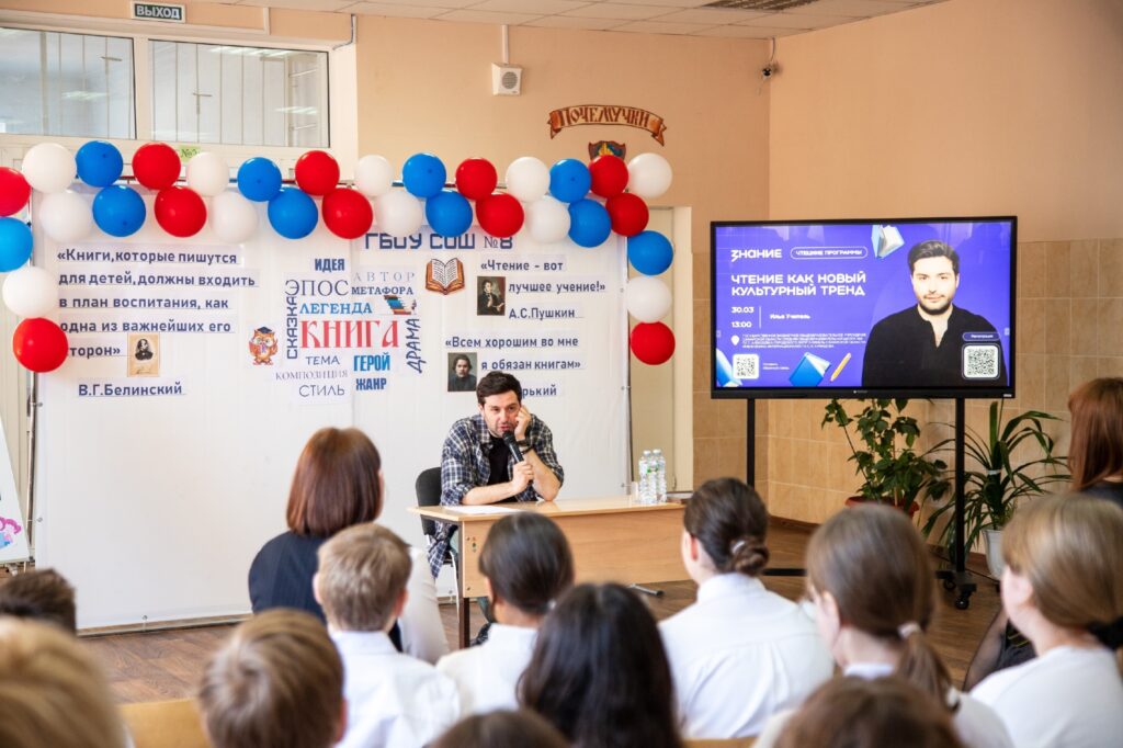 Встреча с деятелем культуры стала наградой для учащихся школы и уникальной возможностью лично пообщаться с одним из известных кинорежиссеров современности. Мероприятие прошло в формате открытого диалога. Илья Учитель рассказал о роли книг в своей жизни, о том, как они вдохновляли и помогали ему. В неформальной обстановке он поделился мыслями о современном кино, творческом пути и создании фильмов.