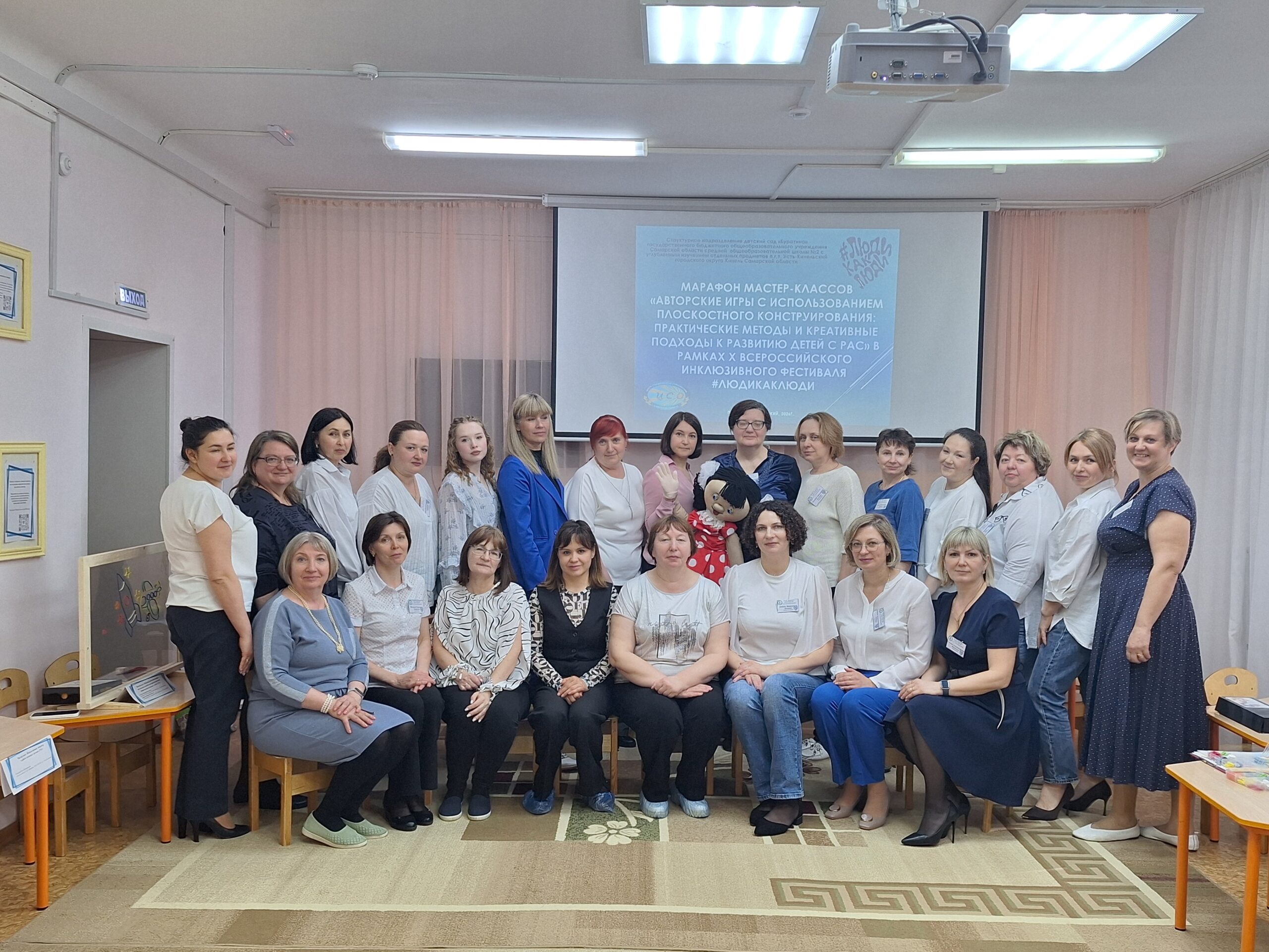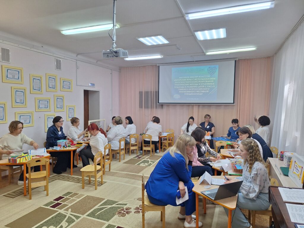 В целях повышения компетенций по созданию авторских развивающих игр применением плоскостного конструирования, направленных на успешное развитие и социализацию детей с расстройствами аутистического спектра в СП ДС «Буратино» ГБОУ СОШ №2 п.г.т Усть-Кинельский в рамках X Всероссийского инклюзивного фестиваля #ЛюдиКакЛюди в нашем детском саду состоялся марафон мастер-классов на тему: «Авторские игры с использованием плоскостного конструирования: практические методы и креативные подходы к развитию детей с РАС».
