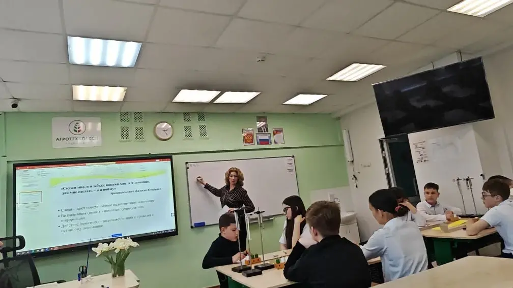 Леонтьева С.Н. (биология) рассказала про агрокласс. Это не просто уроки — это проекты, посадки, исследования. «Дети сами выращивают растения, сами наблюдают — и биология становится любимым предметом», — поделилась Светлана Николаевна.
