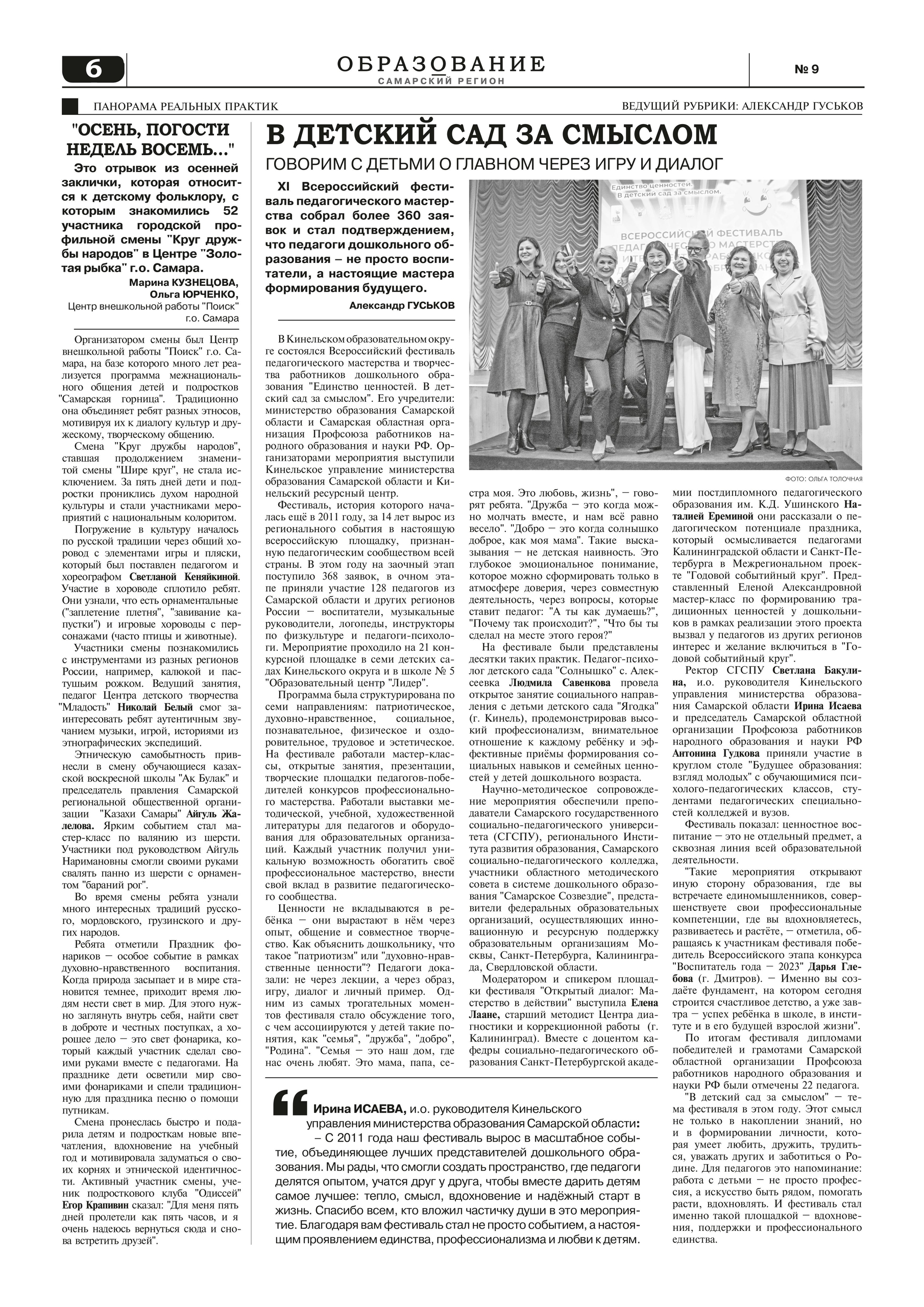 В ноябрьском выпуске «Образование-Самарский регион» опубликована статья о XI Всероссийском фестивале педагогического мастерства и творчества работников дошкольного образования «Единство ценностей. В детский сад за смыслом», который прошел в Кинеле. Этот…